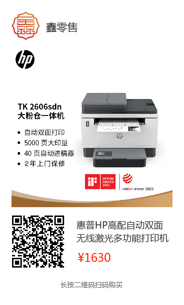 惠普HP高配自动双面无线激光多功能打印机2606dw